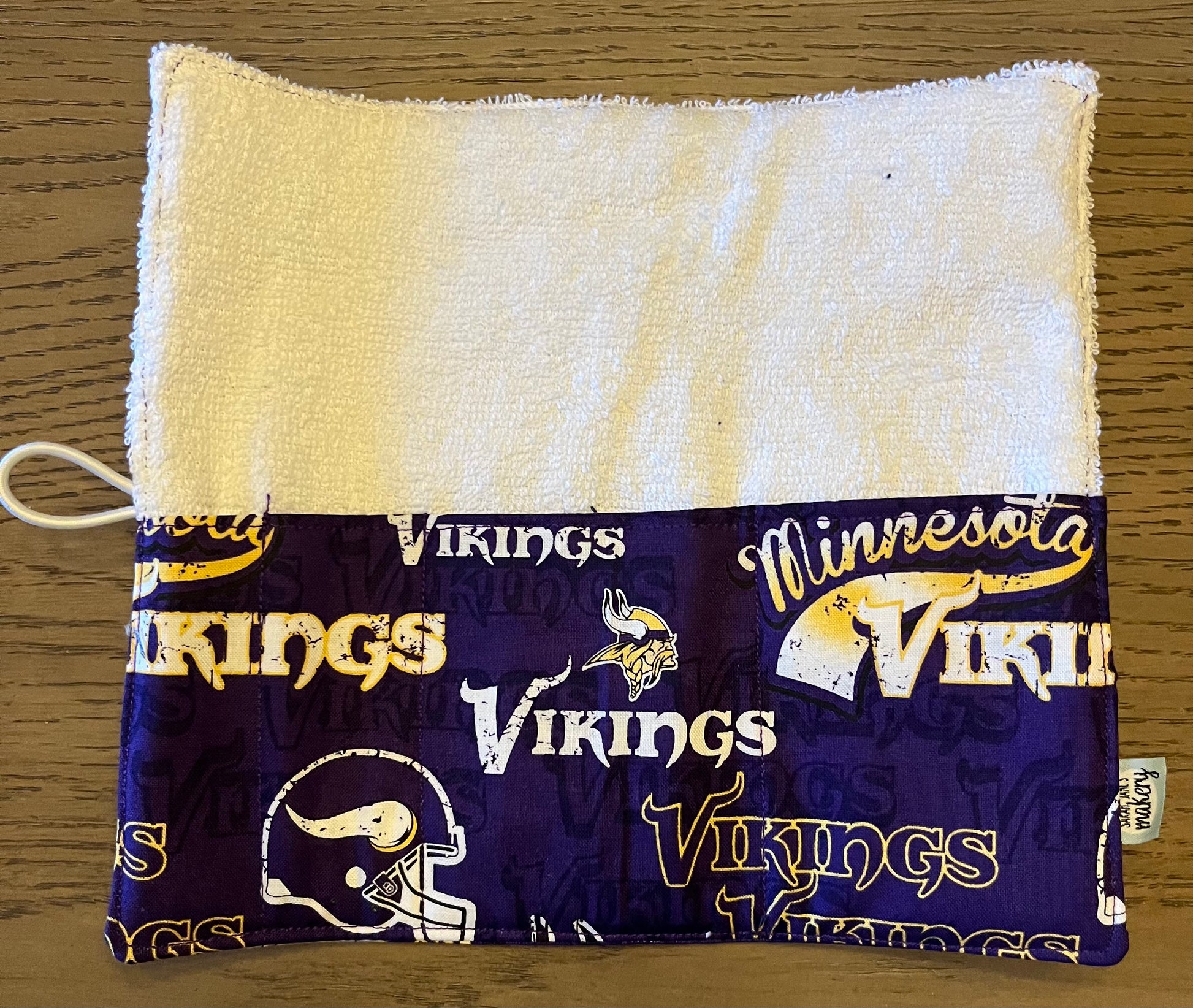 Roll up bags are are made out of 100% cotton exterior with loop terry interior. Print placement may very from picture shown. Please see size chart for measurements and check out our site for other Vikings gifts and items!